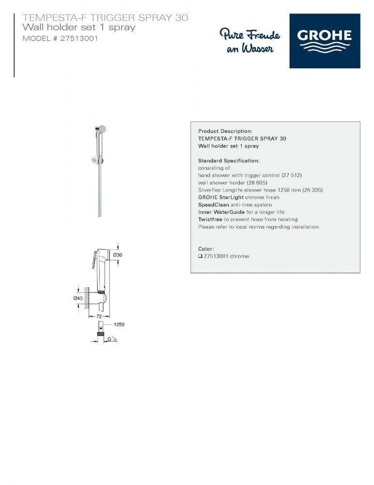 أضف وظائف مطلقة إلى حمامك المنزلي المثالي من خلال تركيب مجموعة حامل جدار Tempesta-F Trigger Spray 30 الجديدة. يوفر الرذاذ تنظيفًا دقيقًا وقويًا لمزيد من الراحة والنظافة، مع إعطاء الزناد تحكمًا دقيقًا وخرطوم TwistFree يضمن عدم التعرض للتشابك. لوحة رذاذ الرأس قابلة للفصل لسهولة التنظيف وفوهات SpeedClean مصممة للتنظيف بالفرشاة الخالية من الترسبات الكلسية بمسح بسيط.فيما يضيف تشطيب GROHE StarLight من الكروم المتين والمبهر ليجعله يبدو مذهلاً. يمنع Inner WaterGuide المعزول للغاية السطح من أن يصبح شديد الحرارة، ويحمي بشرتك، ويمنع اللمسة النهائية اللامعة للكروم. تم تصميمه بالهندسة الألمانية التي يمكنك الوثوق بها، وأضف هذه التفاصيل الإضافية المفيدة وبأسعار معقولة إلى حمامك اليوم. يرجى الرجوع إلى اللوائح المحلية المتعلقة بالتركيب.