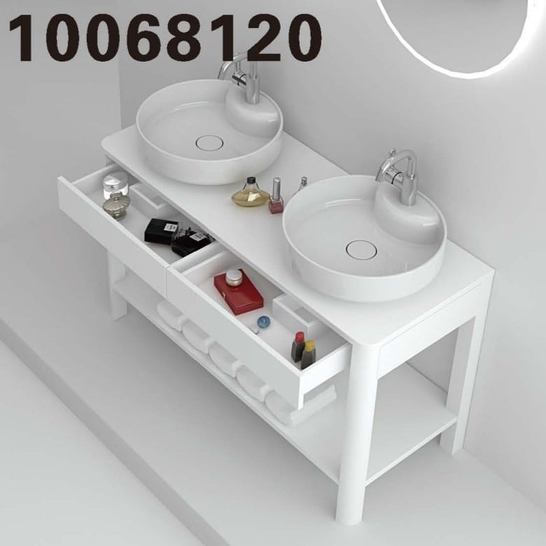مغسلة حوضين رخام بالكامل مقاس 120 سم مع مرايا ليد 10068120